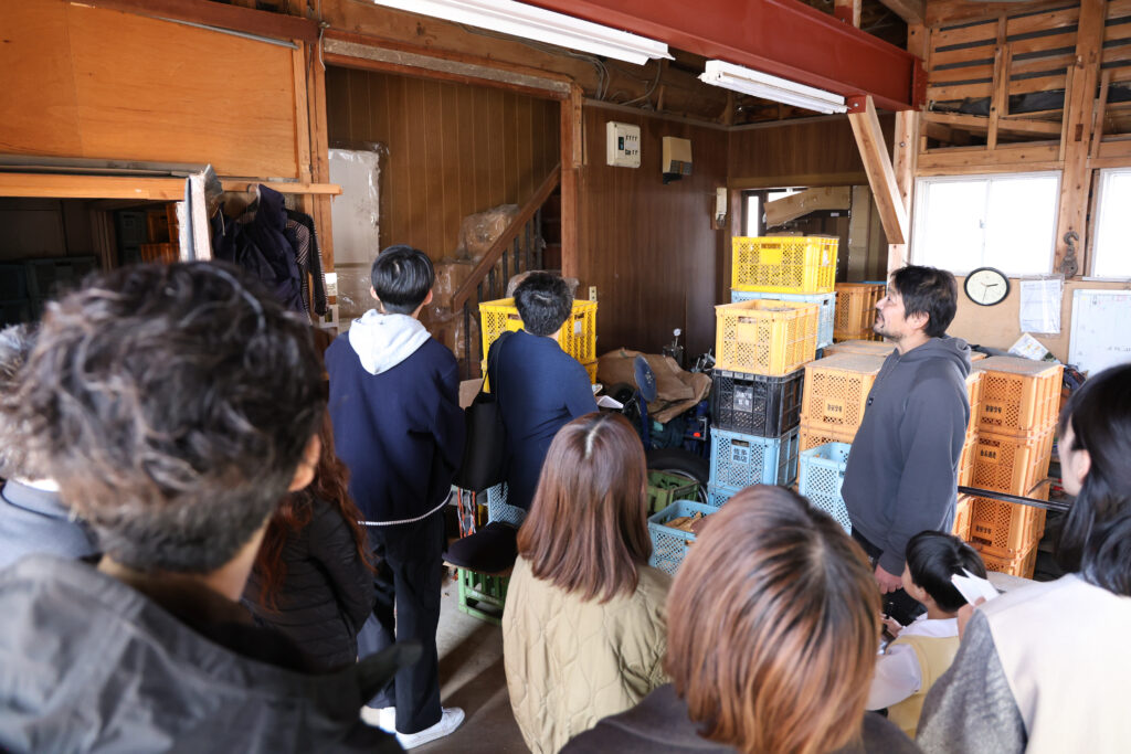 このフィールドワークでは、地域で働く人々の声に直接触れ、現場の空気や温度を五感で感じることを重視し、産業や文化がどのように生まれ、どのような課題に直面しているのかを、自らの視点で確かめていきました。塾生たちは、ただ「見る」のではなく、地域を「読み解く」姿勢でこの日に臨んでいました。こうして、地域の現在地を捉え、未来を考えるための学びの旅が始まりました。