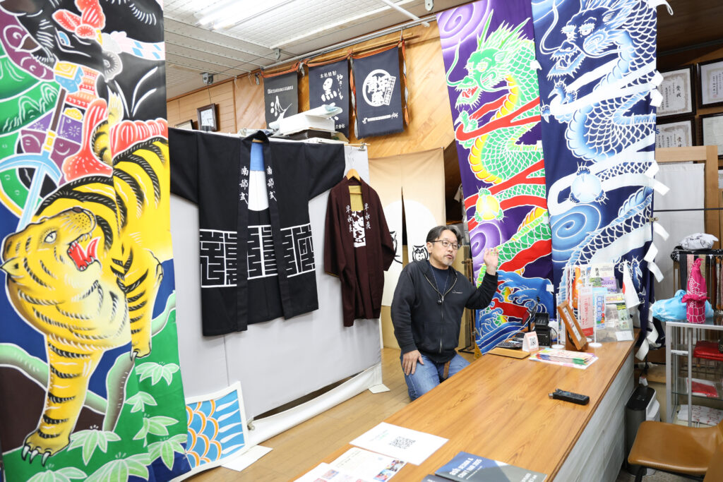 『亀﨑染工』は大漁旗や五月のぼりを手がけてきた歴史ある染物工房です。