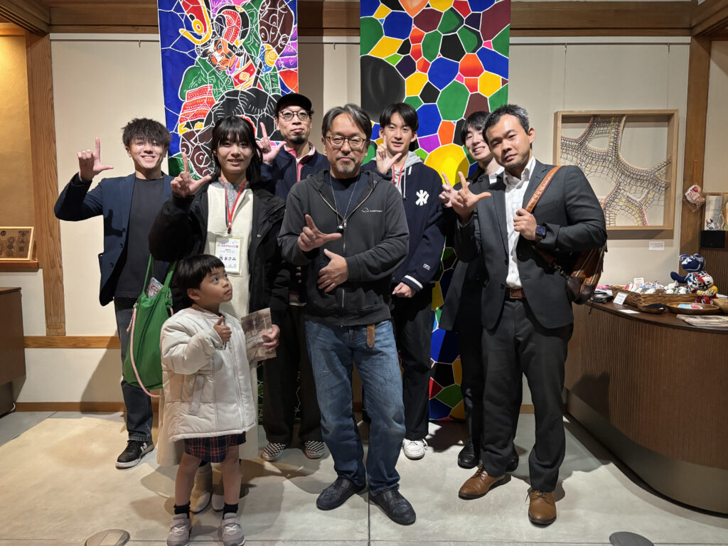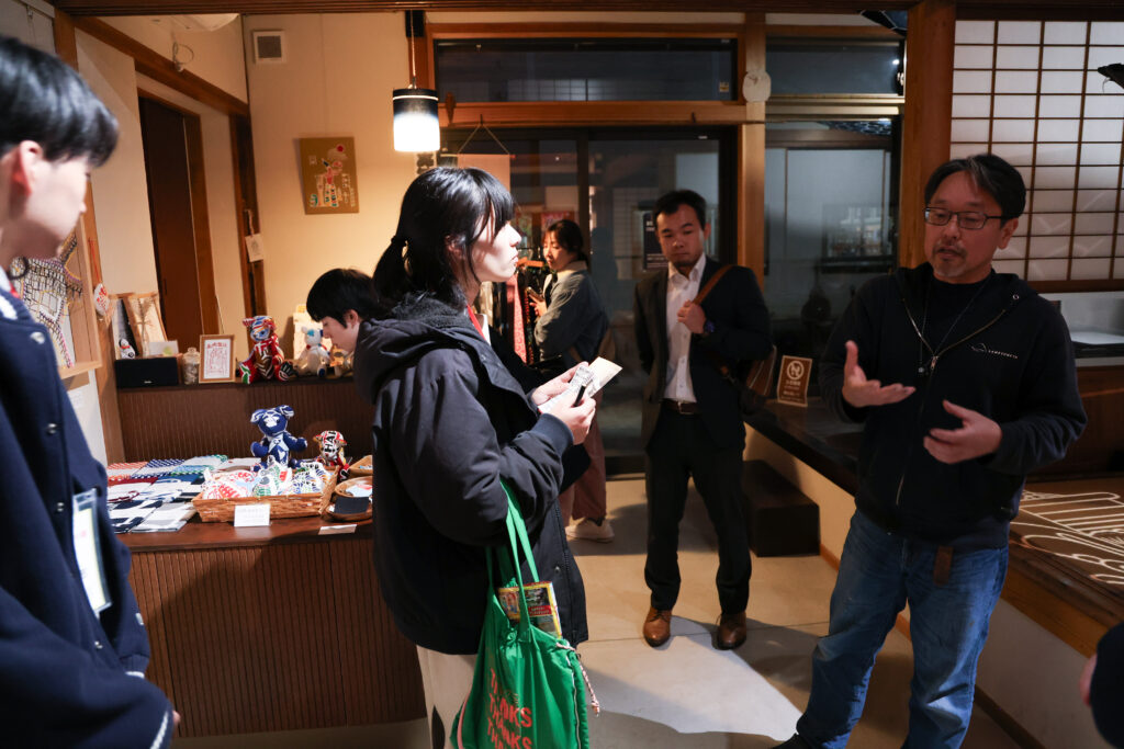 訪問日はアートイベント「ash Design & Craft Fair 2025」の期間中で、型紙展示やコラボ作品を通じて、伝統と新しい感性が交わる場がつくられていました。『亀﨑染工』は、変化を恐れず挑戦することで、伝統を未来へつなぐ道を切り開いていることを塾生たちはその目で確認していました。